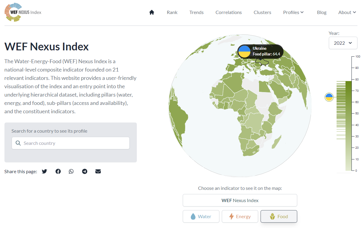 The WEF Nexus Index is a composite indicator which measures integrated resource management and sustainable development across the three sectors of Water, Energy and Food.